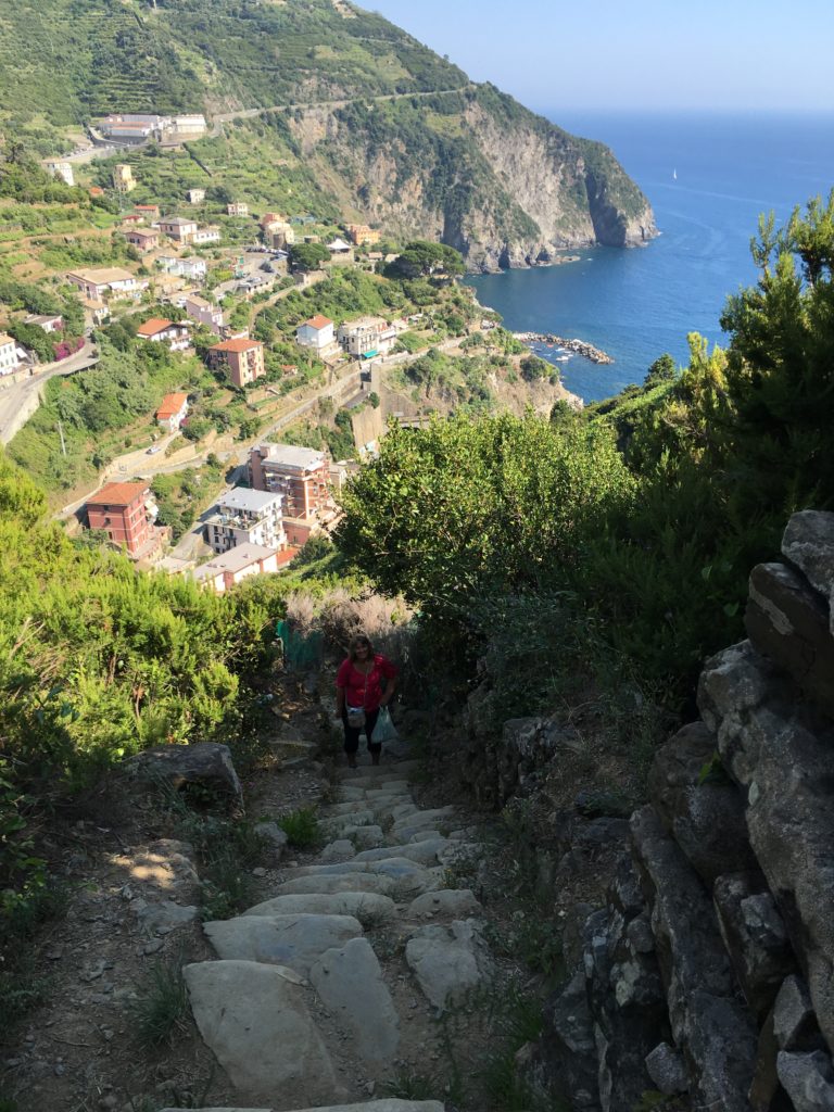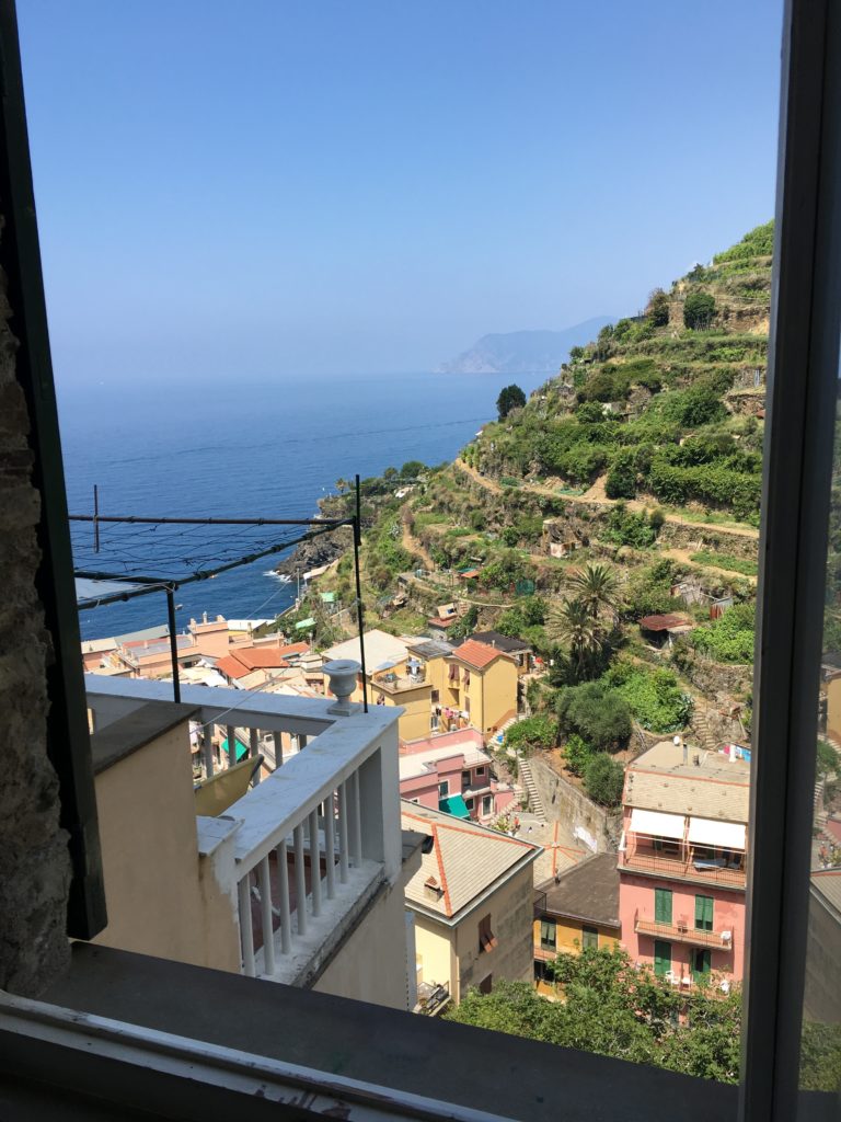 Manarola is the second of the five villages, our hotel at the top:) We climbed steady for ten minutes and were greeted by Emily who quickly got us settled into our new cliffside apartment, a cool two story abode.