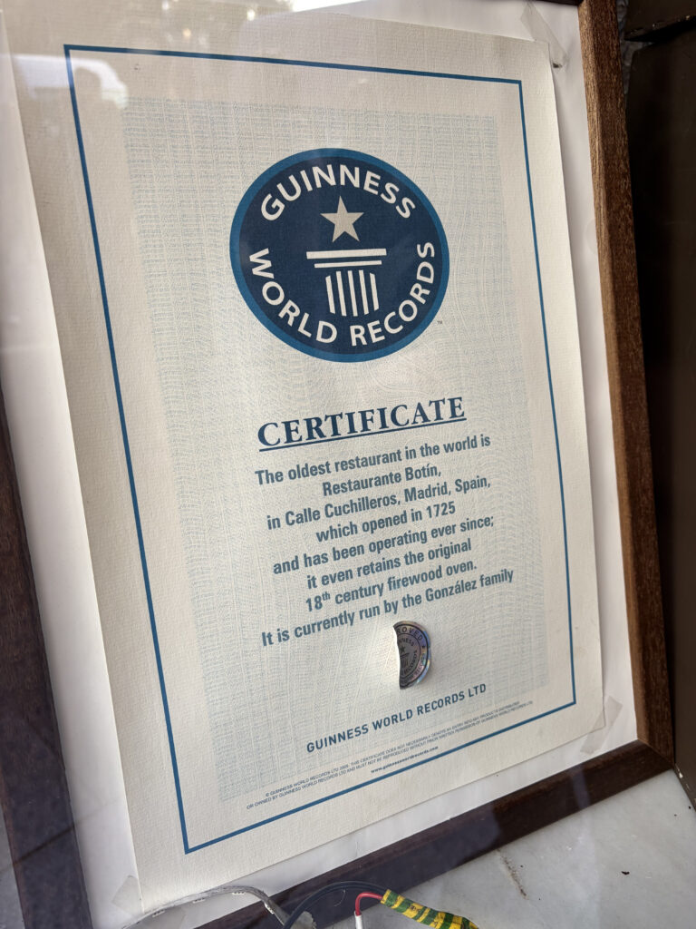 We paused outside Sobrino de Botín—not just any restaurant, but the oldest continuously operating one in the world. Since 1725. Goya supposedly worked there before he became Goya, which is wild to think about. We didn’t eat there this time, but just standing near it felt like brushing up against a very long timeline that included the famed writer Hemingway.