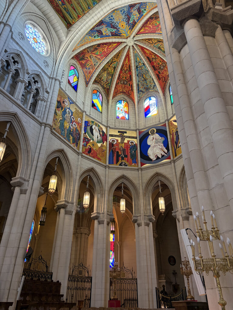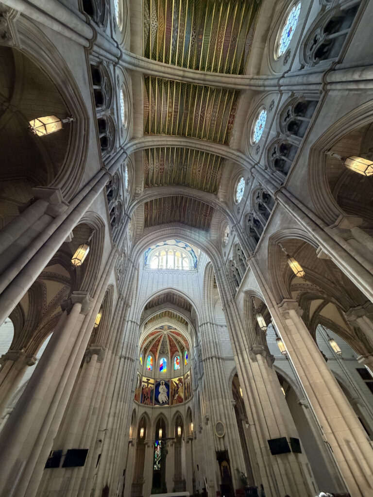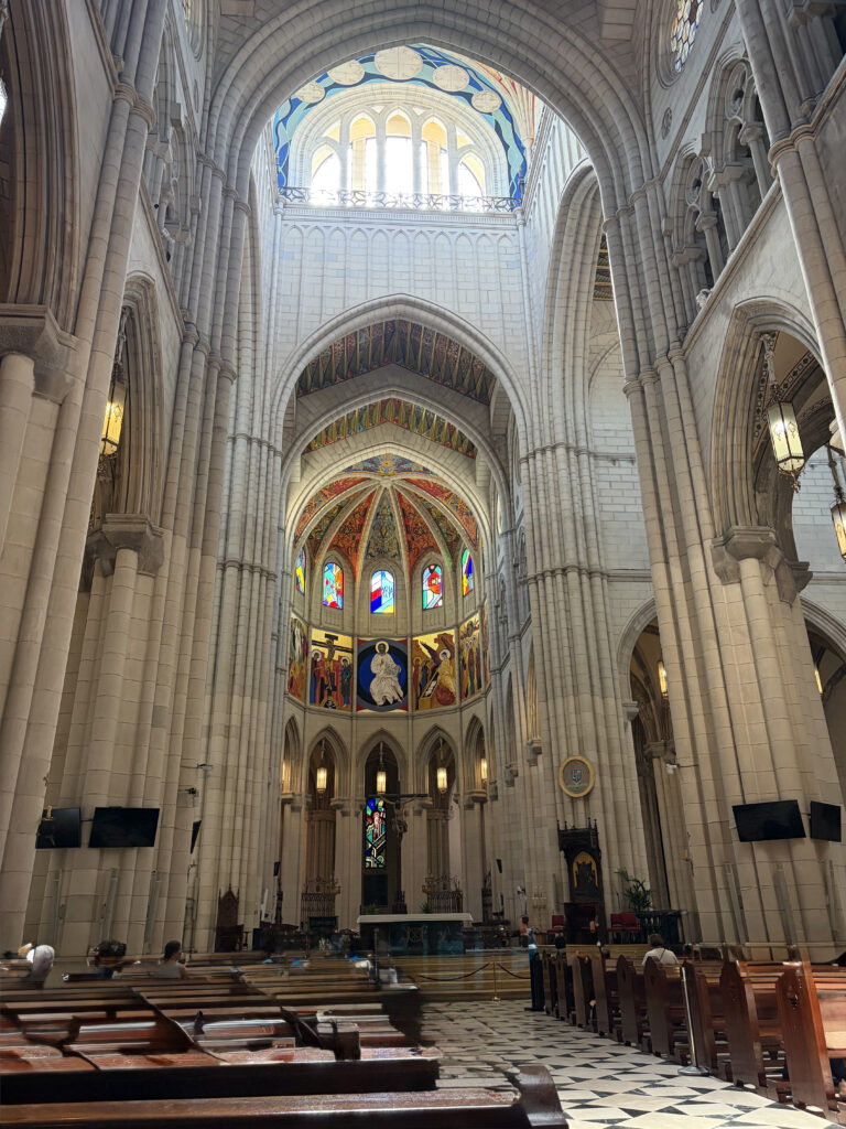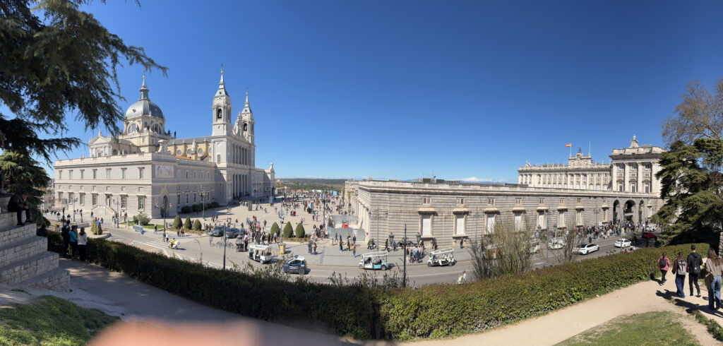 Somewhere in between all that eating and wandering, we made our way up toward Almudena Cathedral. It’s surprisingly modern compared to most European cathedrals—finished in 1993—but it still carries this quiet weight. Oddly enough it is the only cathedral outside of Rome that has been blessed by a Pope. Right across from it, the scale shifts again with the Royal Palace of Madrid. Massive, ornate, almost overwhelming. It’s the largest royal palace in Western Europe, though the Spanish royal family doesn’t actually live there anymore. Walking through the grounds, it’s hard not to picture the centuries of monarchy, ceremonies, and power that passed through those halls.
