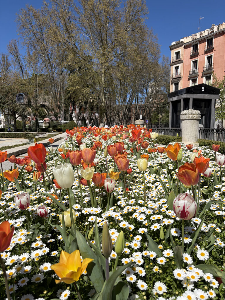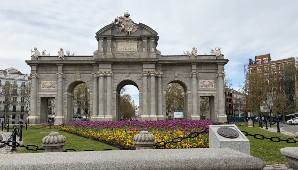 From there we looped back toward Puerta de Alcalá, standing in the middle of traffic like it has nowhere else to be. Built in 1778, it once marked the edge of Madrid when the city was still walled. Now it just watches everything move around it. Everyone crowded in the middle of two major streets to get an Instagram photo.