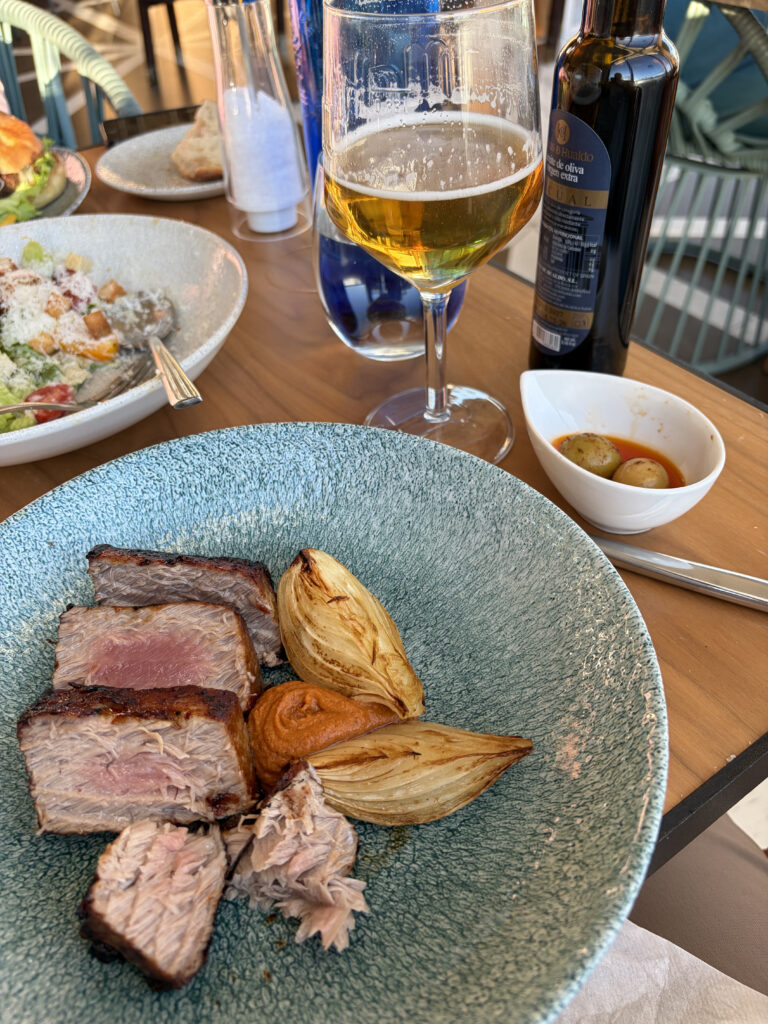 Dinner took us somewhere completely different: Ginza Sky Bar. Sleek, modern, with views that stretch out over the city. It felt like a contrast to everything earlier—old Madrid versus new Madrid in the span of a few hours. We lingered there a bit, letting the day settle.