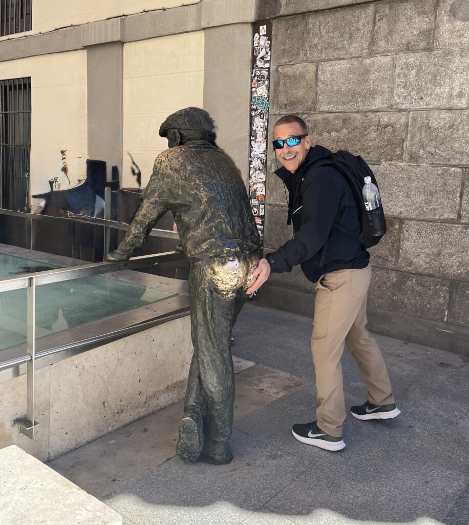 We cut through toward Plaza de Santa Ana, and the mood shifted again. Quieter, more thoughtful. This is the heart of the old literary quarter—Barrio de las Letras—where writers like Miguel de Cervantes and Federico García Lorca once moved through these same streets. Their statues stand there now, like they’re still watching the place. It’s strange to think that some of Spain’s greatest words were written just a few steps from where we were standing.