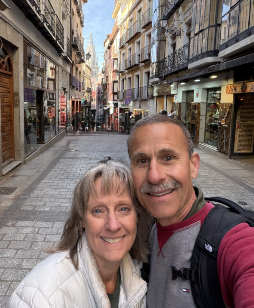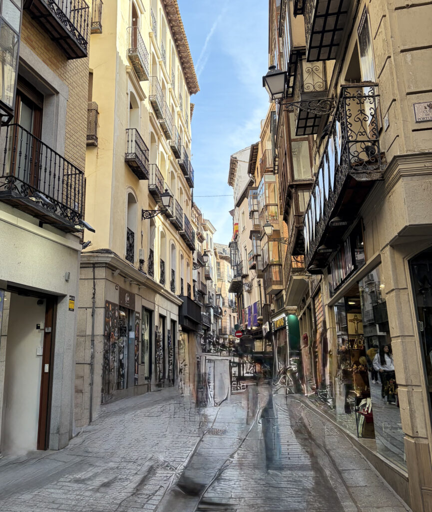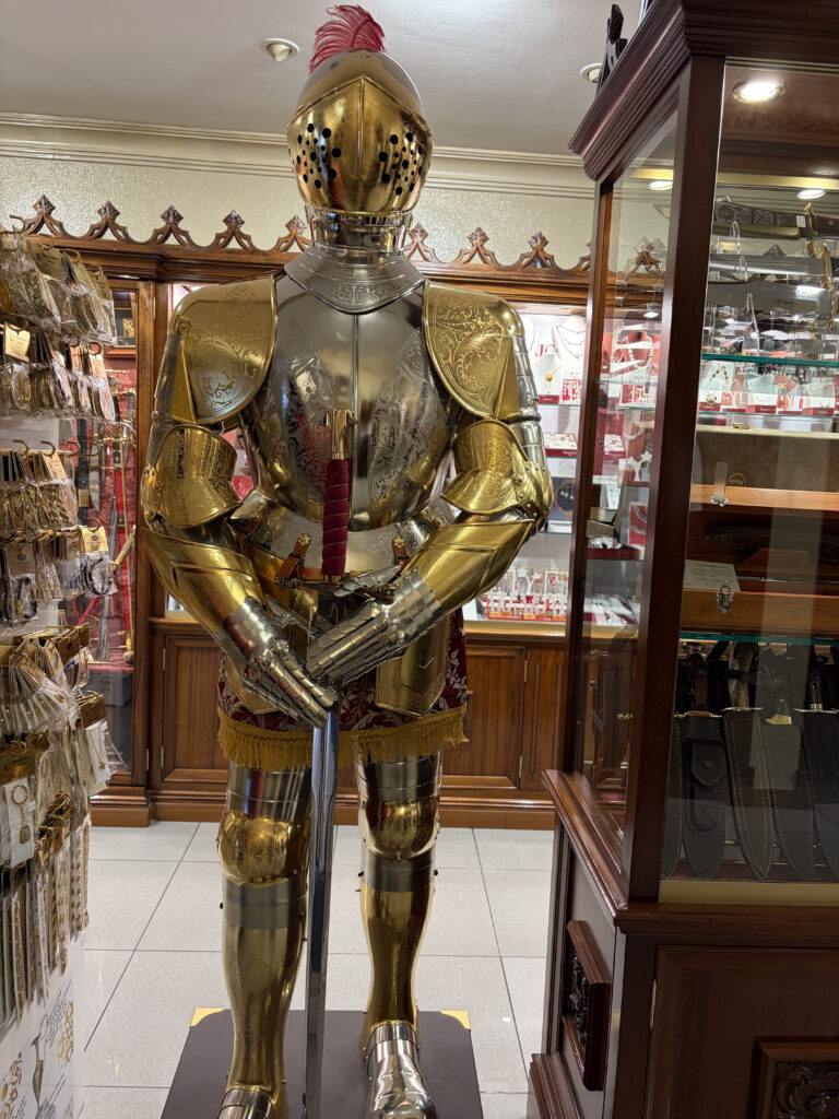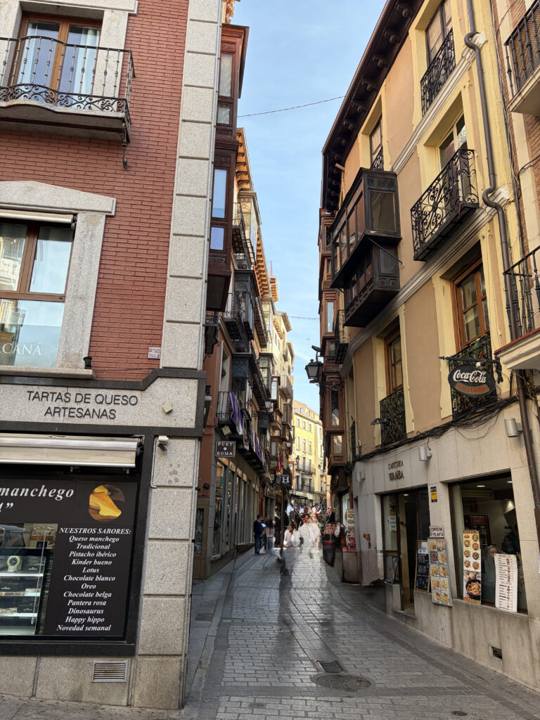 Toledo doesn’t ease you in. It rises up all at once—layers of stone, history stacked on top of itself. For a while, Kellie and I just wandered up and down the cobblestones, ducking into small shops, looking for things to bring back for Blair, Mira, Penny or Justin and Rebecca, Cameron and Jena. Little swords, marzipan, hand-painted ceramics. Toledo’s been famous for steel since Roman times—armies once trusted blades made here—and somehow that legacy still lingers in the shop windows. I’m thinking I need another kitchen knife to rival the one we purchased in Tokyo.