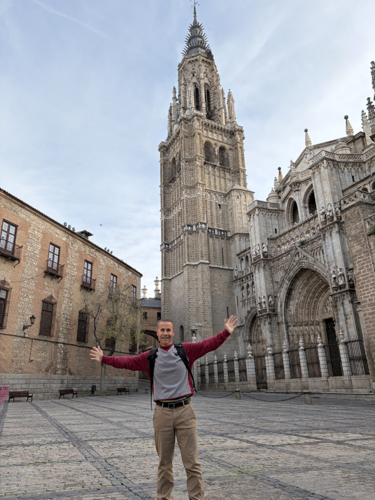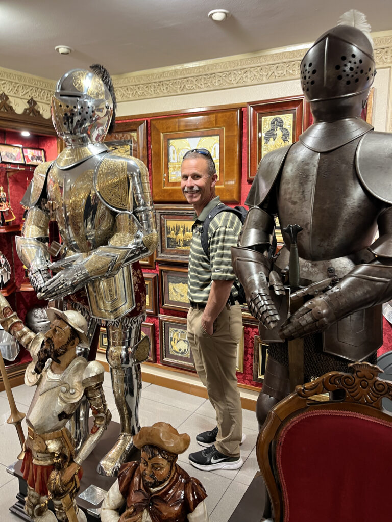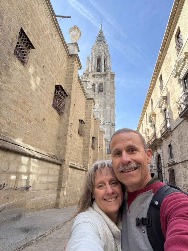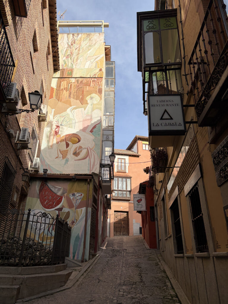 Toledo doesn’t ease you in. It rises up all at once—layers of stone, history stacked on top of itself. For a while, Kellie and I just wandered up and down the cobblestones, ducking into small shops, looking for things to bring back for Blair, Mira, Penny or Justin and Rebecca, Cameron and Jena. Little swords, marzipan, hand-painted ceramics. Toledo’s been famous for steel since Roman times—armies once trusted blades made here—and somehow that legacy still lingers in the shop windows. I’m thinking I need another kitchen knife to rival the one we purchased in Tokyo.