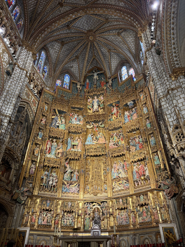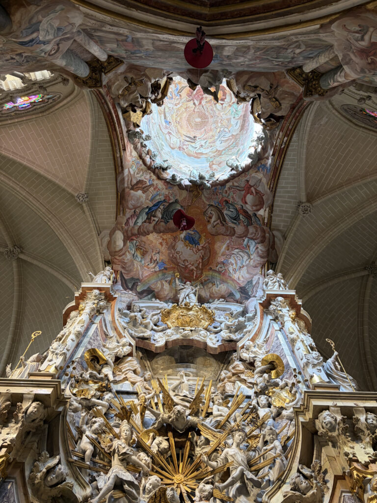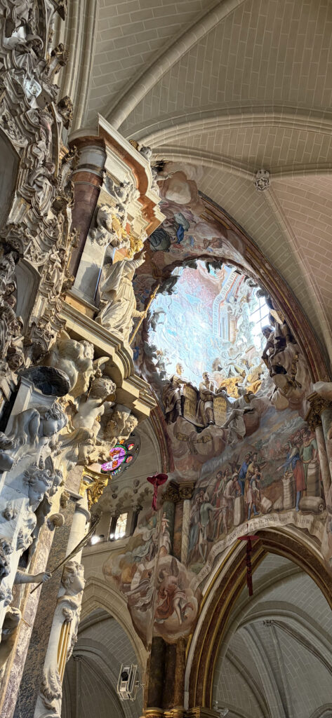 By 11:00 we made our way into the Toledo Cathedral, and that’s where the day slowed down again. You walk in and it just opens upward in a way that makes you stop mid-step. Built between the 13th and 15th centuries, it was meant to impress—and it still does. The audio guide filled in the details, but what stuck was the feeling of it: the height, the light, the weight of history. In the sacristy alone, works by El Greco and Francisco Goya quietly line the walls like it’s no big deal.
