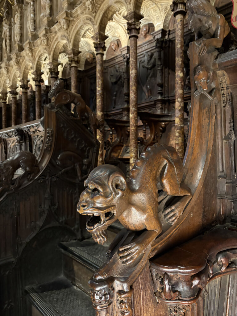 Gargoyles in the choir chairs