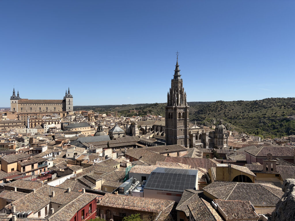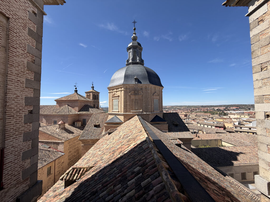 The afternoon became a steady unfolding of Toledo’s layers. At the Iglesia de los Jesuitas, we climbed the towers—step after step, 134, until the city opened beneath us. The rooftops, the cathedral, the river curling around it all. Built in the 17th century, it reflects the reach of the Jesuits during Spain’s global expansion, but from the top, it just feels like perspective.