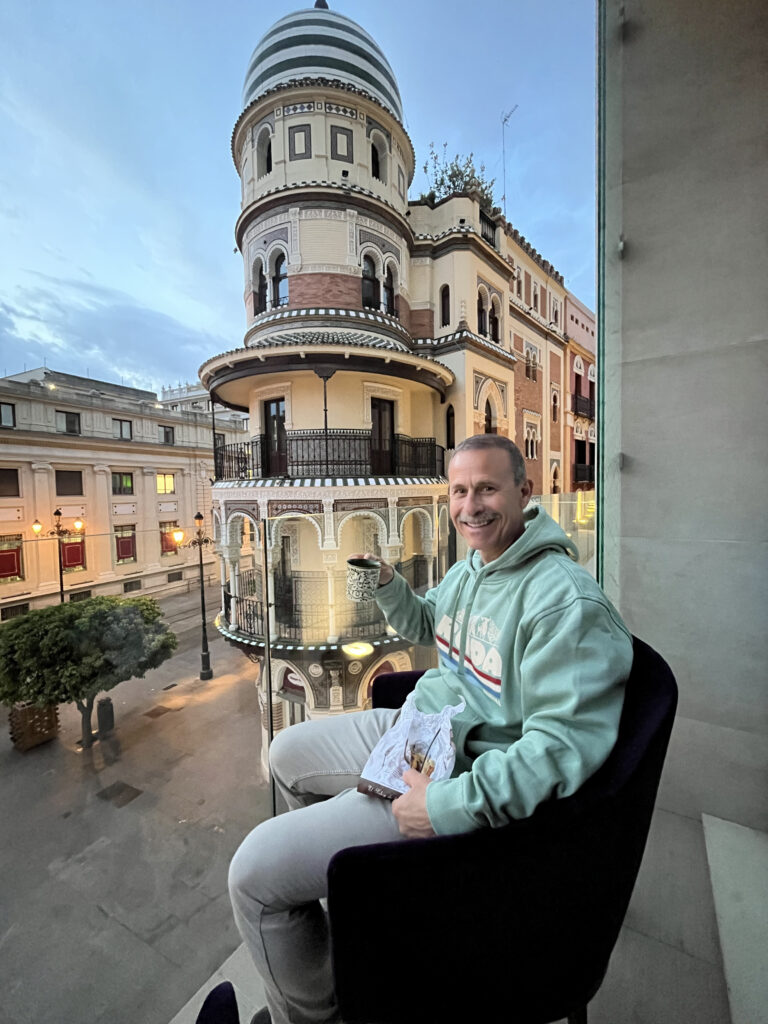 It started in that slow, slightly disoriented way travel mornings sometimes do—laundry spinning somewhere behind us, the city still stretching awake—before we crossed over the Puente de Isabel II into Triana.
