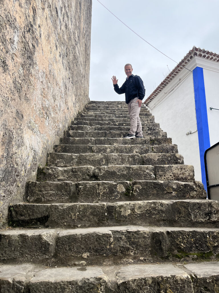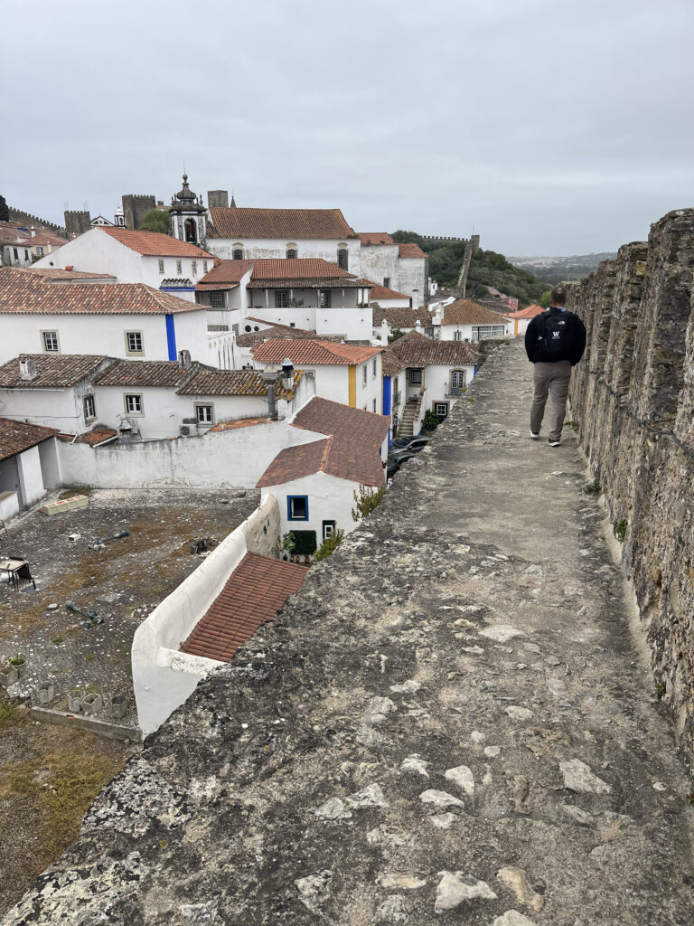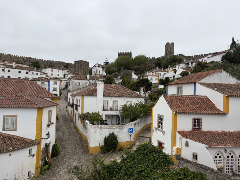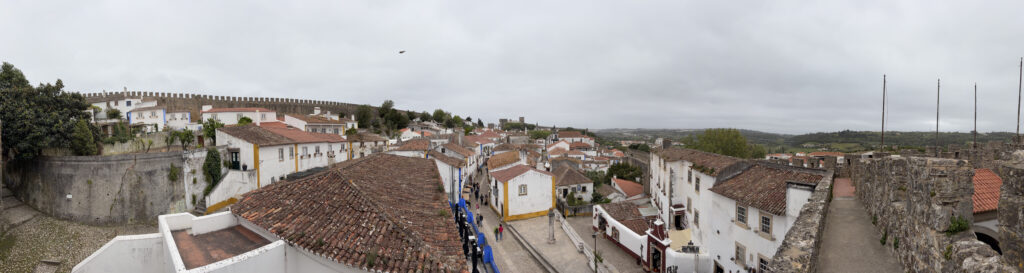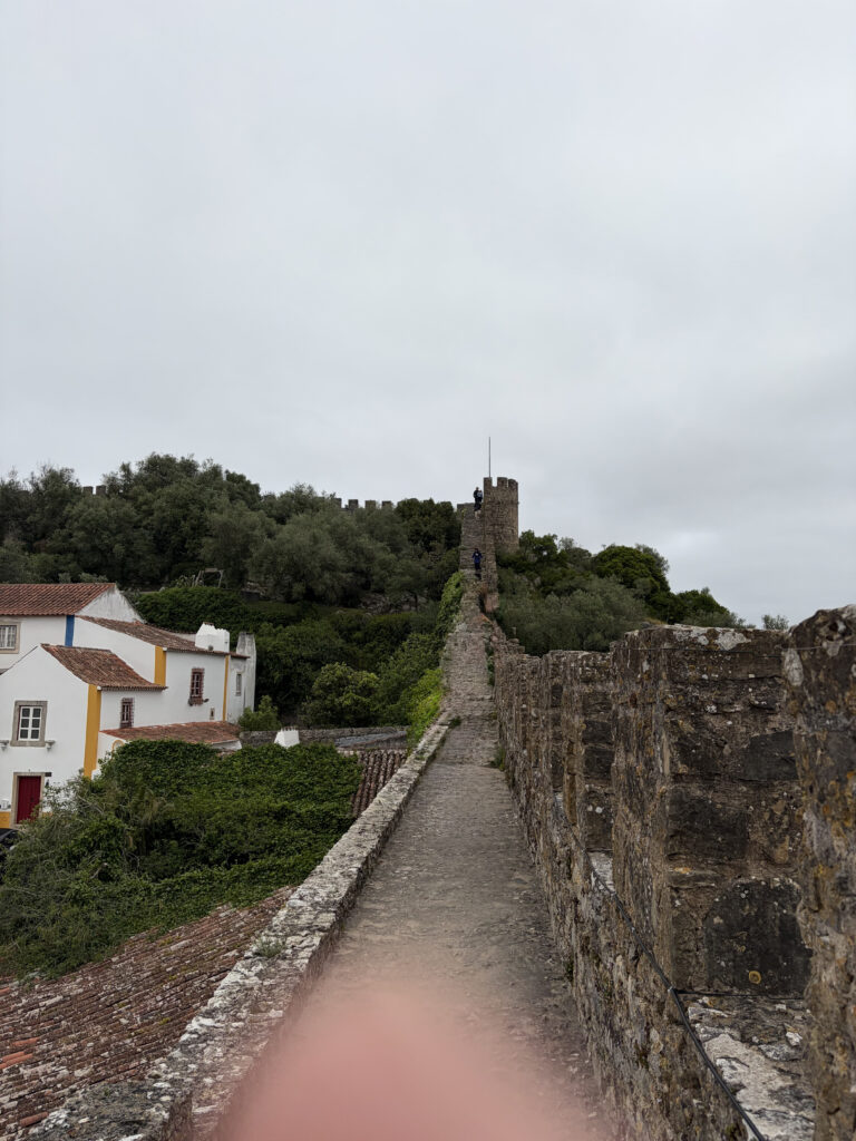 The first thing that really stopped us wasn’t even inside town—it was the long, sun-bleached stretch of the Aqueduto de Óbidos. Built in the 1500s to bring water into the hilltop village, it still runs almost completely intact, like a quiet introduction before the main act.