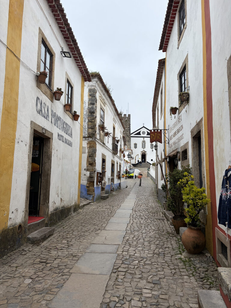 We wandered down Rua Direita, which is basically the spine of the town—bookstores tucked into stone buildings, little bars pouring ginginha in chocolate cups, shops that felt more like personal collections than businesses. Óbidos is even part of UNESCO’s Creative Cities network for literature, which explains the random bookstores in old churches and along the streets.