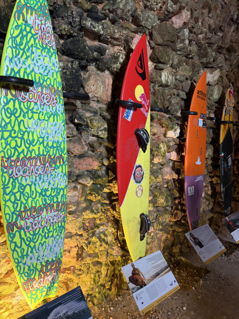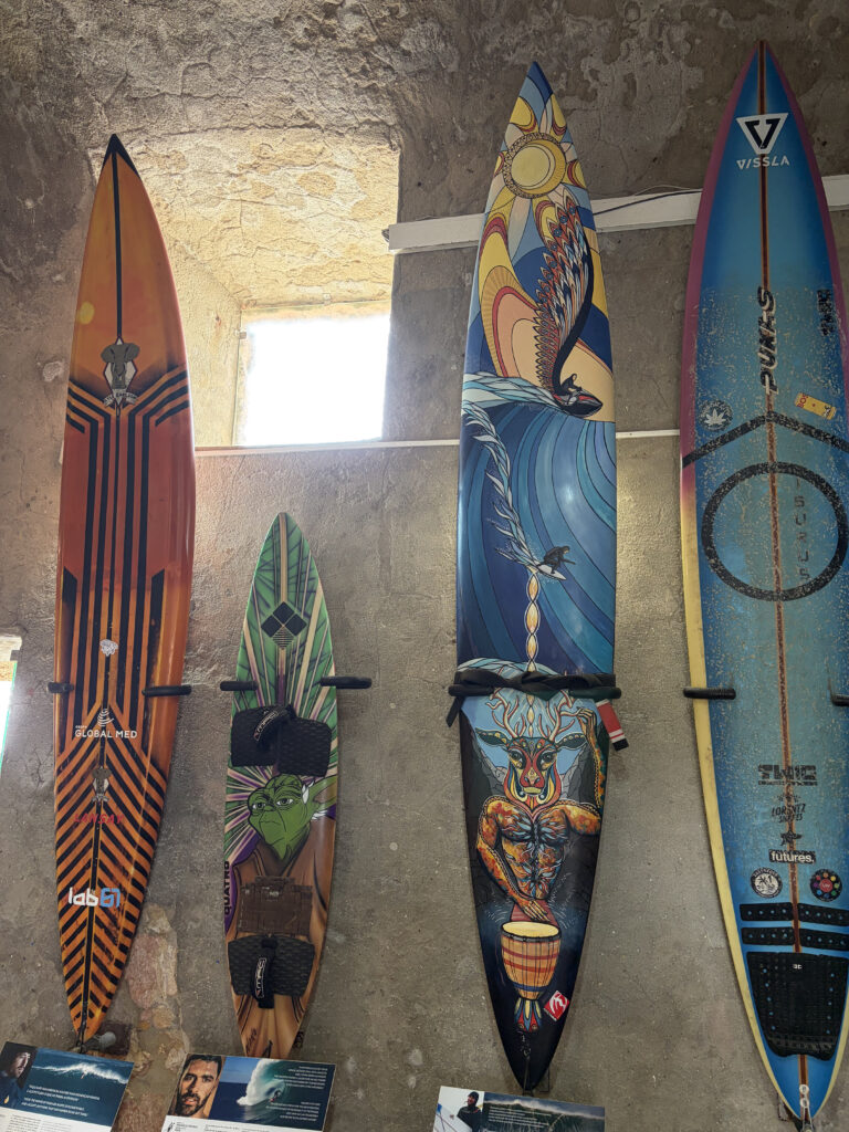 This is where the biggest waves on Earth roll in, thanks to an underwater canyon that funnels and amplifies the Atlantic swell. In 2011, Garrett McNamara put Nazaré on the map by riding a ~78-foot wave. Then Rodrigo Koxa pushed it further. And most recently, Sebastian Steudtner is credited with riding an 86-foot monster here—basically a moving building of water. Many of those amazing boards and their rider and showcased inside the lighthouse as a shrine to those who have conquered.