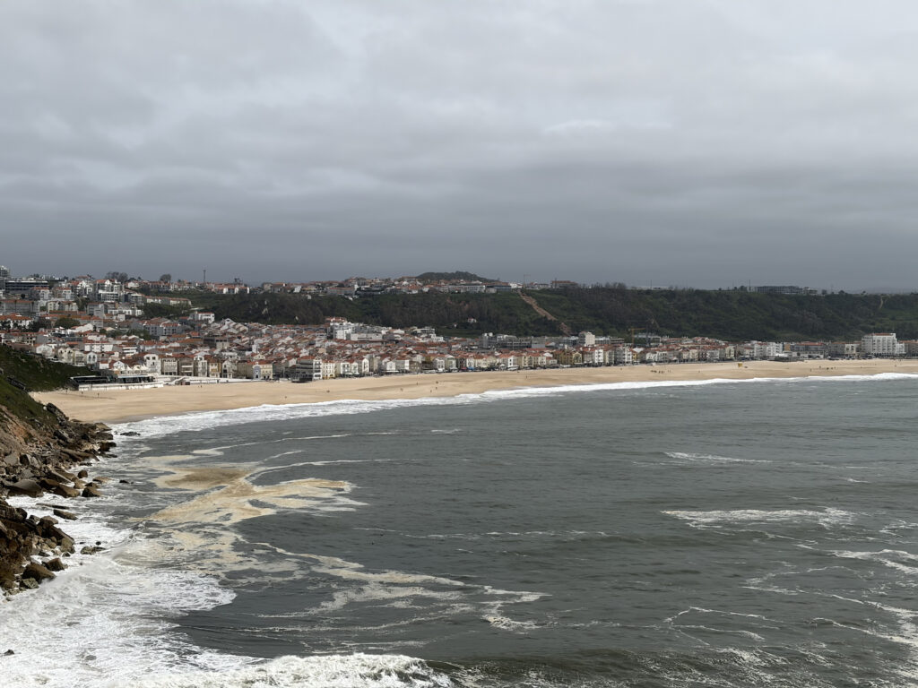 To the left, the long stretch of Nazaré beach. To the right, Praia do Norte—where things get serious.