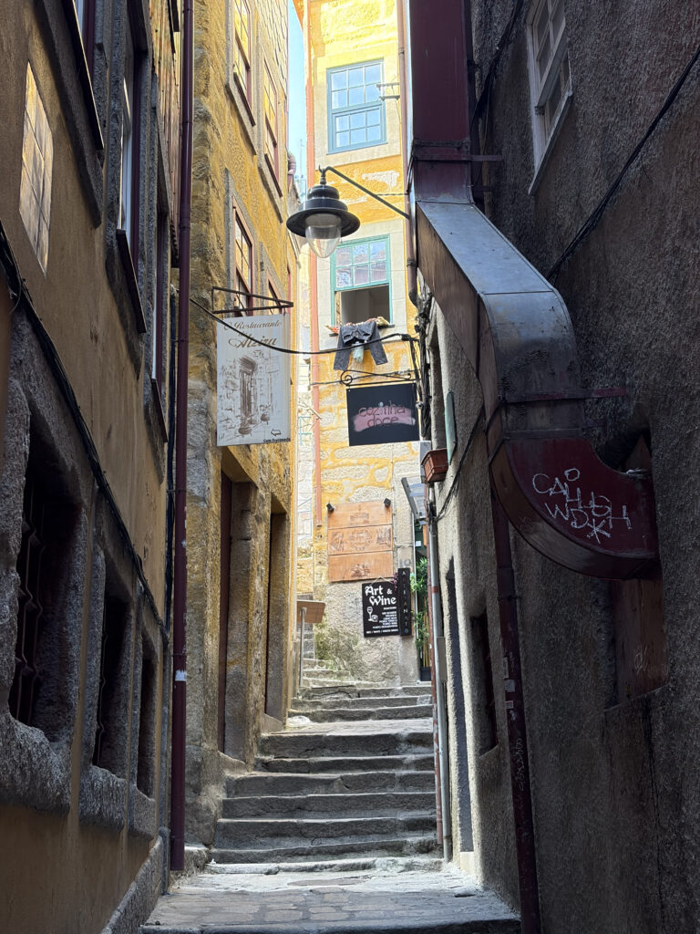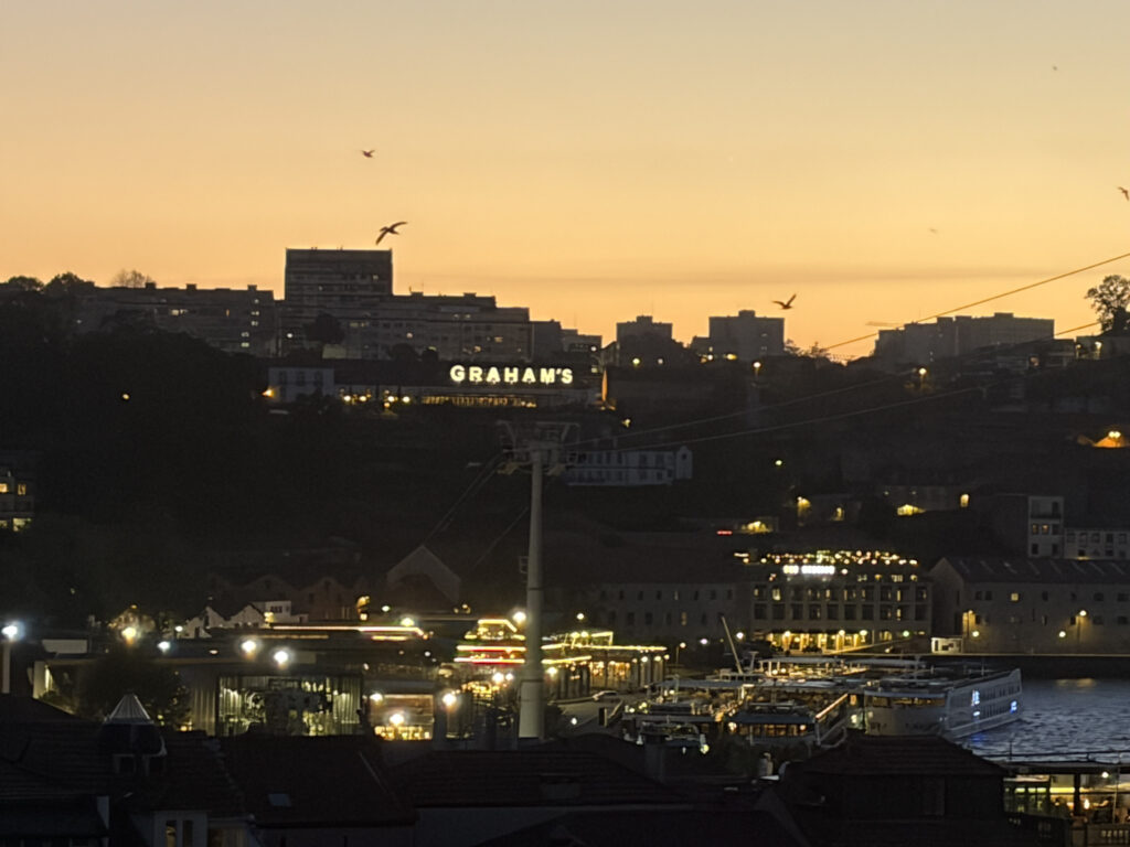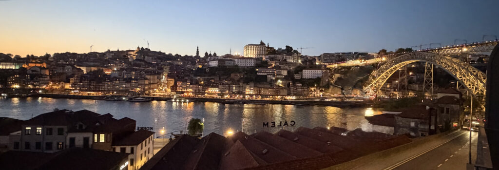 Across the river, Porto just sort of stacked itself upward—layers of color, tile, and history catching the late light. We wandered down along the Douro, grabbed something simple to eat, didn’t overthink it. The kind of meal you don’t remember exactly, but you remember how it felt—easy, unhurried, right place right time.